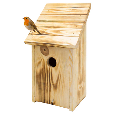 Der Nistkasten eignet sich ideal für die meisten Singvögel wie Meise, Spatz und Drossel